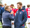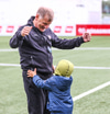 Eiður Smári Guðjohnsen er mættur á völlinn. Hann er að fylgjast með syni sínum sem byrjar að vísu á bekknum í dag.
