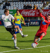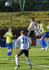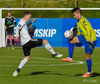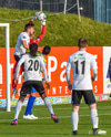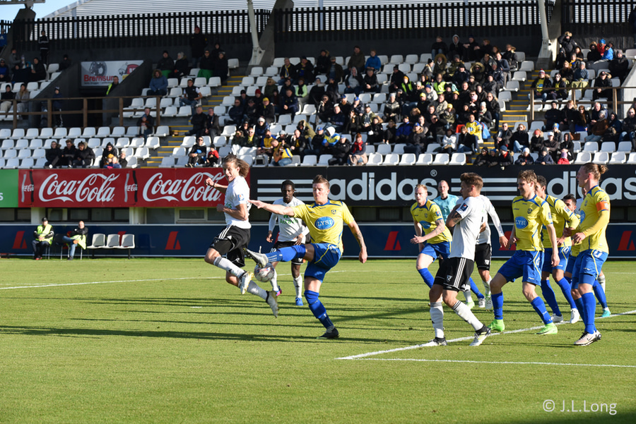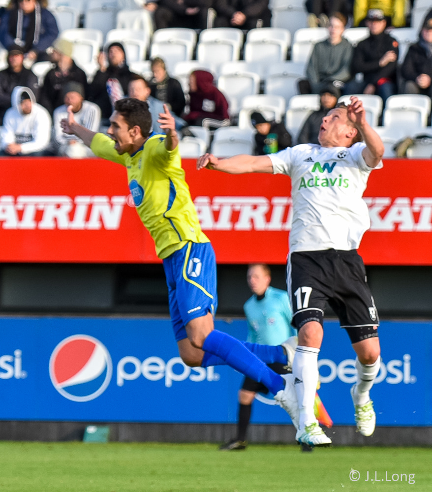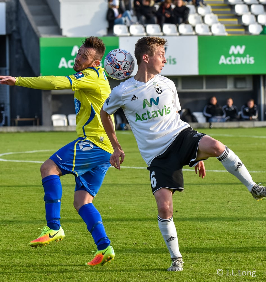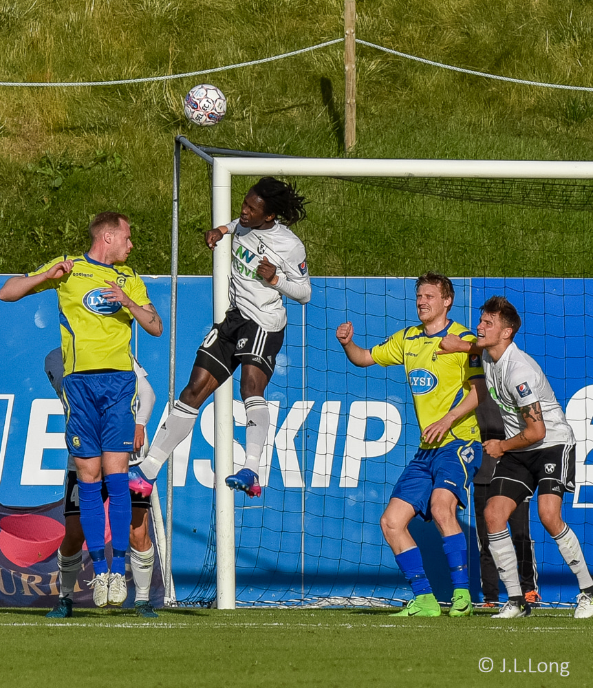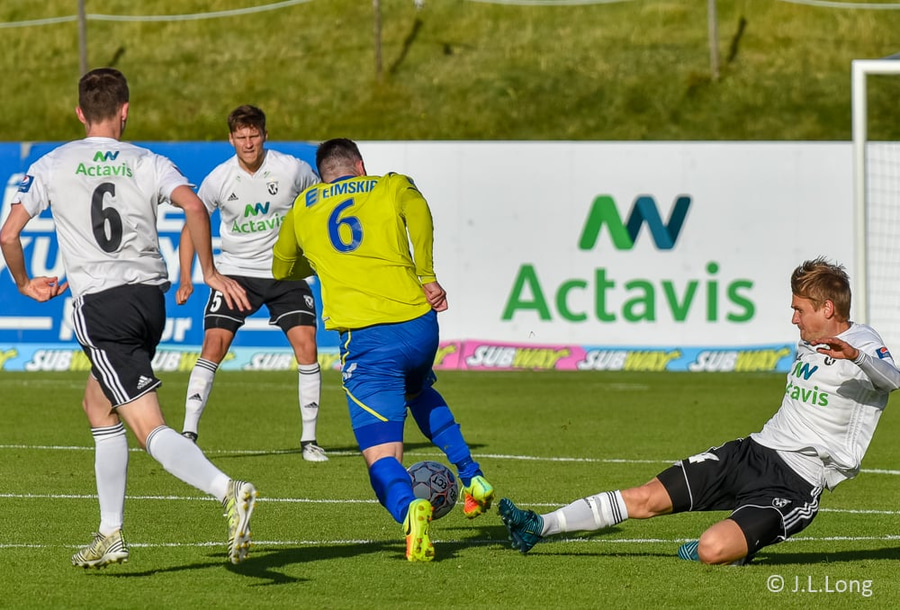 Kassim Doumbia hittir ekki boltann. Rene Joensen fær færi utarlega í teignum en skot Færeyingsins fer framhjá.