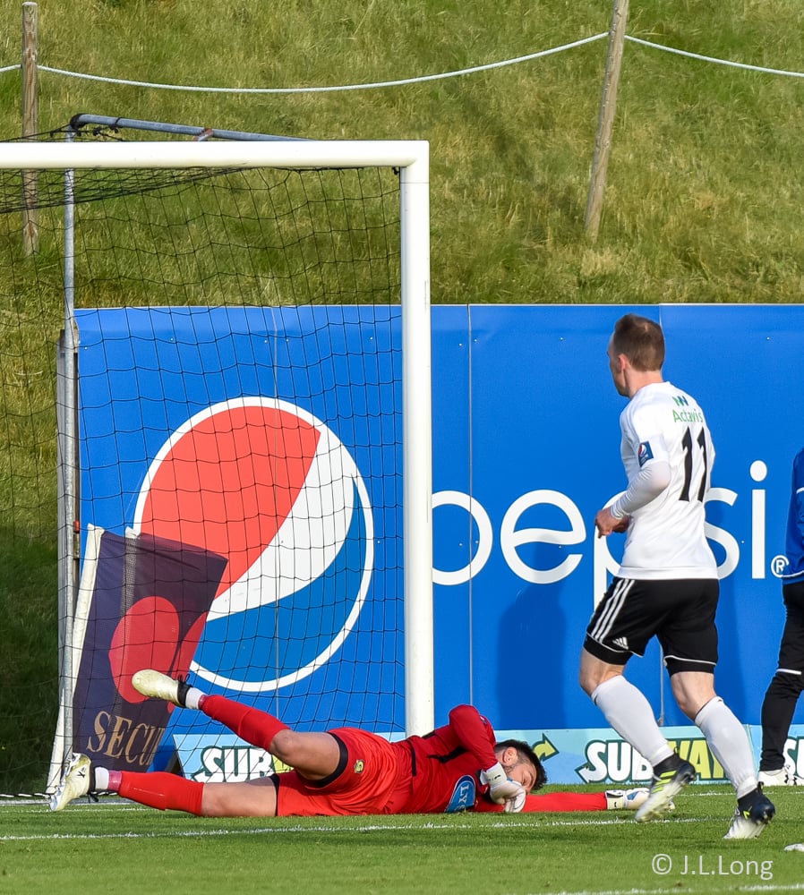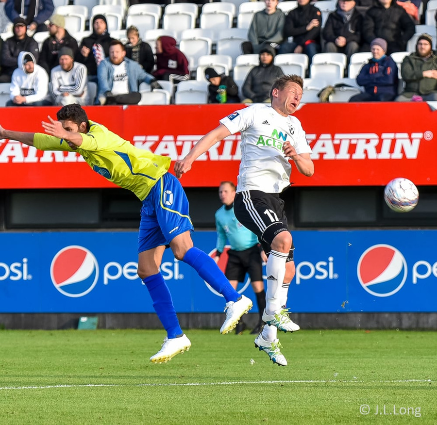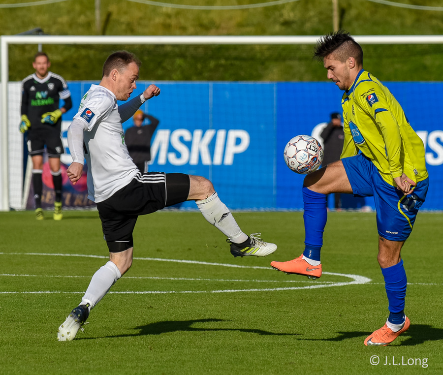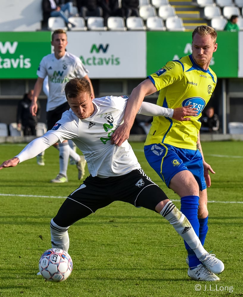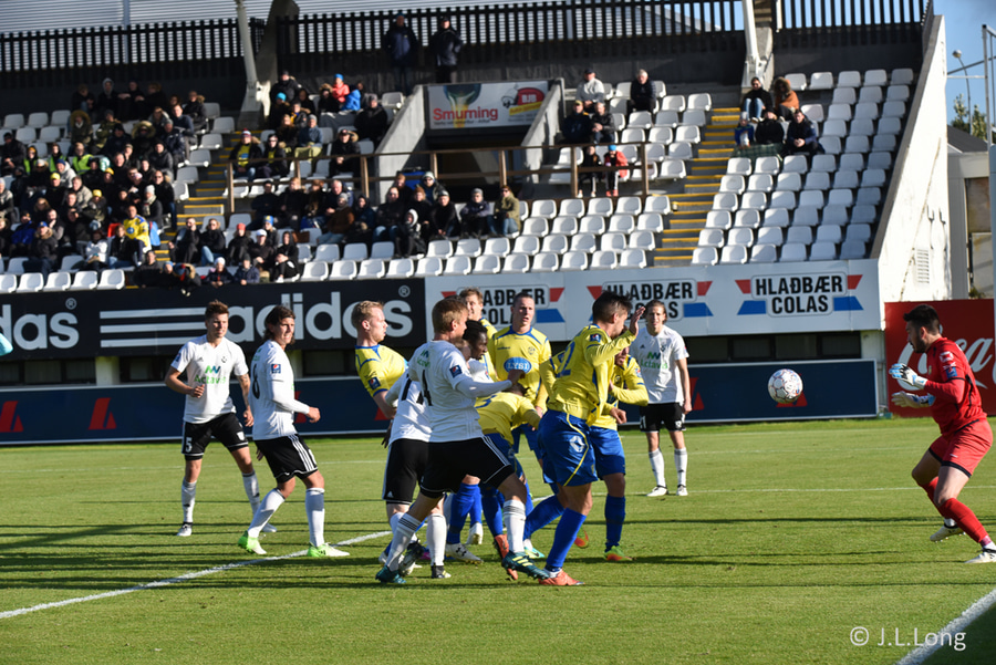 Andri Rúnar nálægt því að sleppa í gegn eftir langa spyrnu frá Jajalo. Gunnar Nielsen kemur vel út fyrir teiginn og skallar boltann burt. Vel gert hjá Færeyingnum.