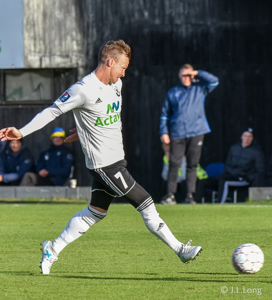 Björn Berg Bryde með frábæra fyrirgjöf á Alexander Veigar sem tekur boltann viðstöðulaust á lofti með vinstri en skotið yfir.