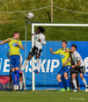 Robbie Crawford með fyrirgjöf frá hægri á Atla Viðar sem á skalla að marki. Jajalo ver örugglega.