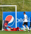 Fór utan í Juanma í skallabolta.