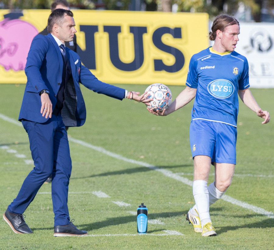 Annað mark upp úr engu! Hár bolti sem er á leiðinni útaf, Rodrigo Gomez er aleinn og hefði getað skýlt honum útaf, skallar hann hins vegar beint á Emil Lyng sem setur Hallgrím auðveldlega í gegn. Hallgrímur gerir engin mistök og klárar undir Jajalo í markinu.