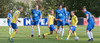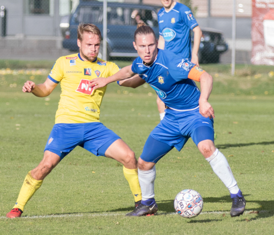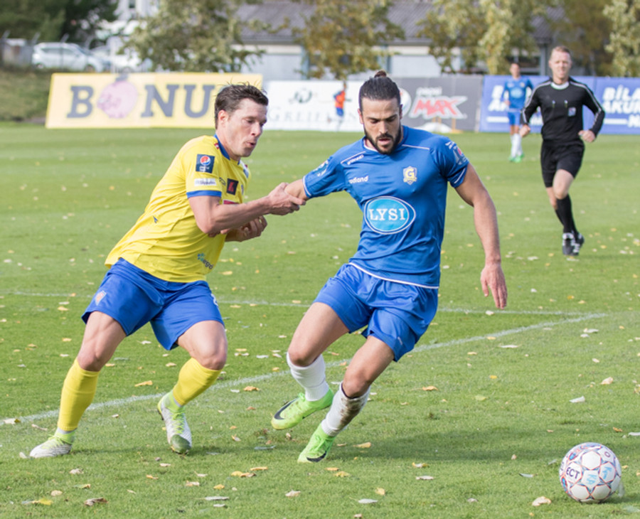 Grindvíkingar byrja með boltann og sækja á móti vindi í átt að miðbænum!
