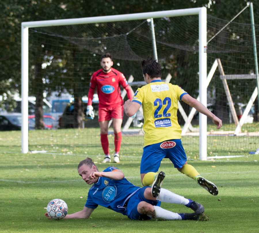 Hallgrímur með fína takta á vinstri kantinum og á síðan ágætis skot á nærstöngina. Jajalo ekki í vandræðum með það.