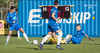 Callum Williams er hér utan vallar að fá aðhlynningu, virðist hafa fengið eitthvað höfuðhögg.