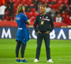 Liðin eru mætt út á völlinn að hita og lætin stigmagnast með hverri mínútu. Ísland er að fara að spila í hvítum treyjum í kvöld. Koma svooo!!!