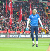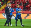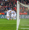Lögreglan á vellinum er farin að umkringja völlinn og stendur nú í röð fyrir framan stúkuna. Hátt í 4000 lögreglumenn eru á vellinum. Ekki nema.