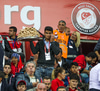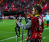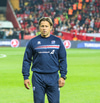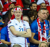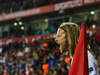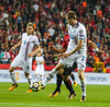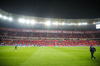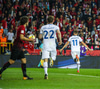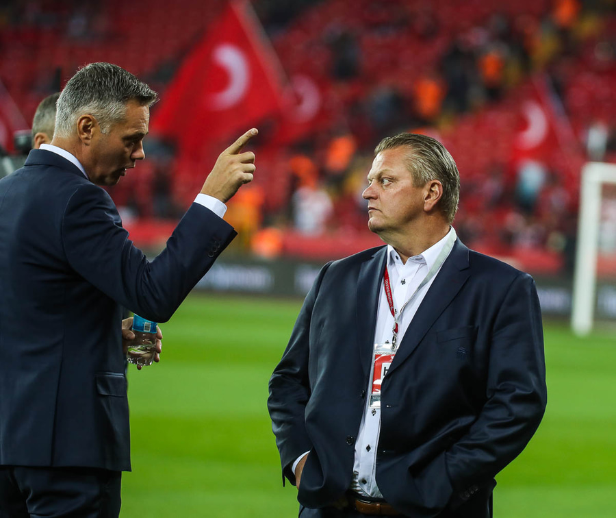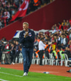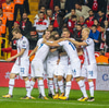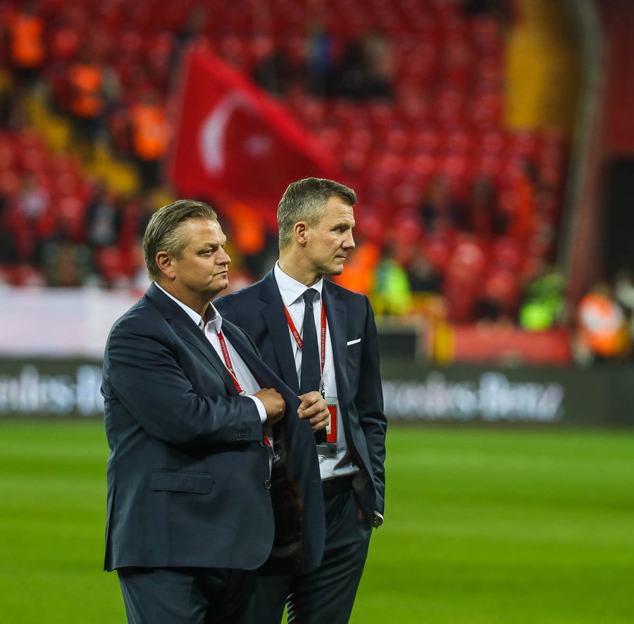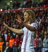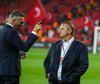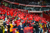 Þjóðsöngvarnir að baki! Það voru hreinlega mögnuð stund þegar þjóðsöngur Tyrkja var spilaður. Fólk tók svo sannarlega undir. Það eru fánar um allan völl. Hér í Tyrklandi eru ekki áhorfendur heldur stuðningsmenn... stuðningsmenn sem eru reyndar fljótir að snúast gegn sínu liði í mótlæti.