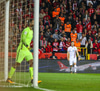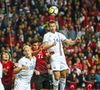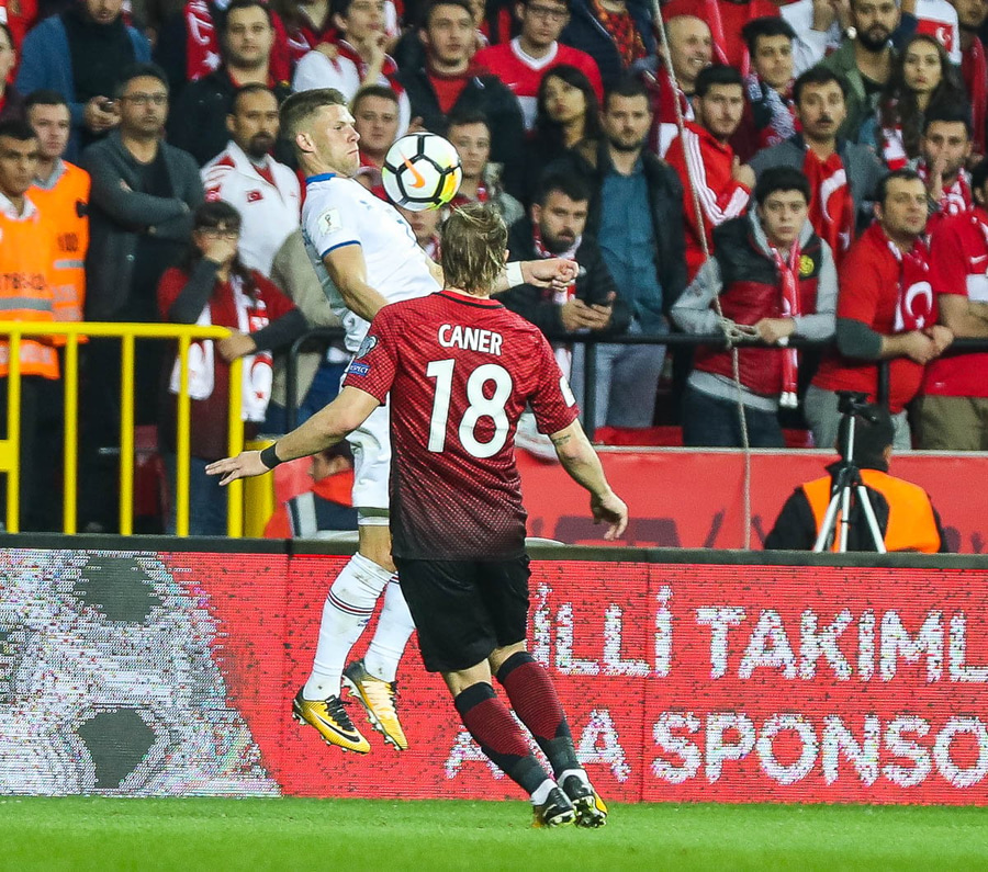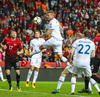 Tyrkir skalla naumlega yfir eftir hornspyrnu.