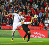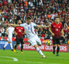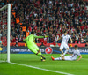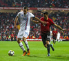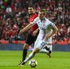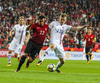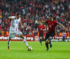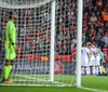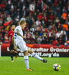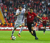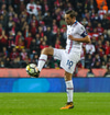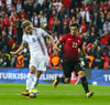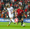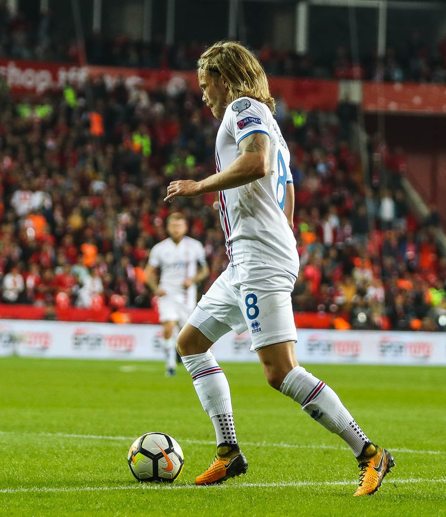 Tyrkirnir eiga í rosalegu basli með hann. Hann var umkringdur í teignum en náði á einhvern ótrúlegan hátt að renna boltanum á Birki Bjarnason. Svakaleg stunga og Birkir skaut boltanum upp í þaknetið!!! ÖNNUR rosaleg afgreiðsla.