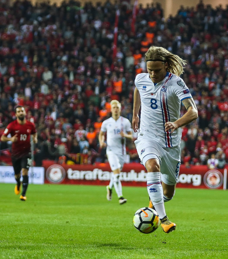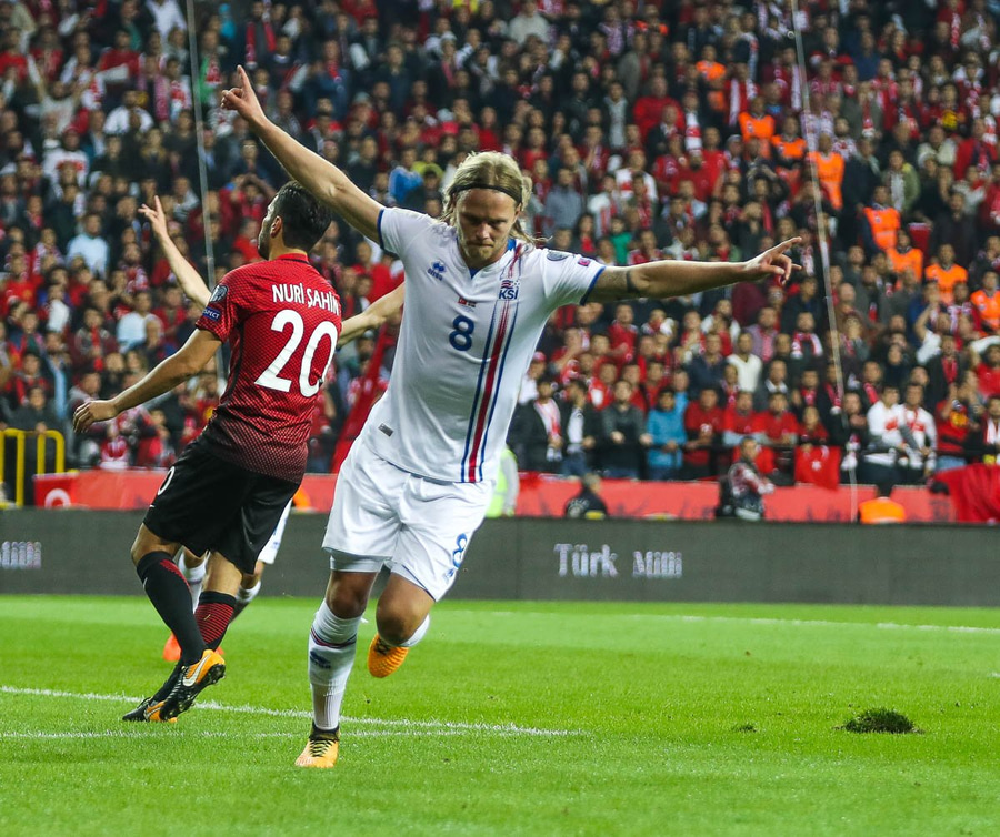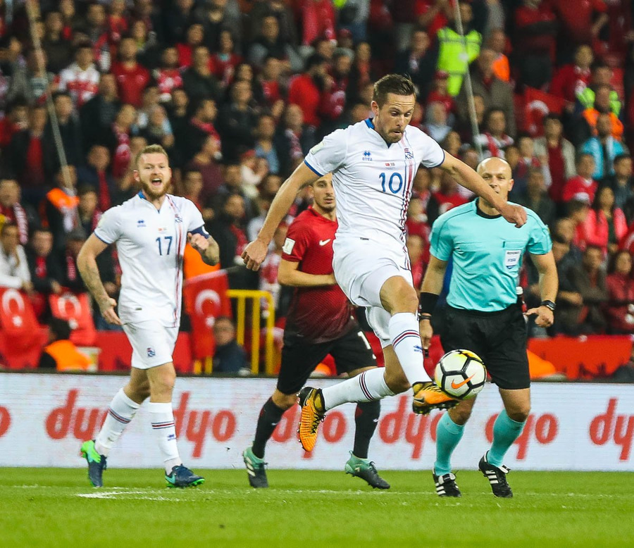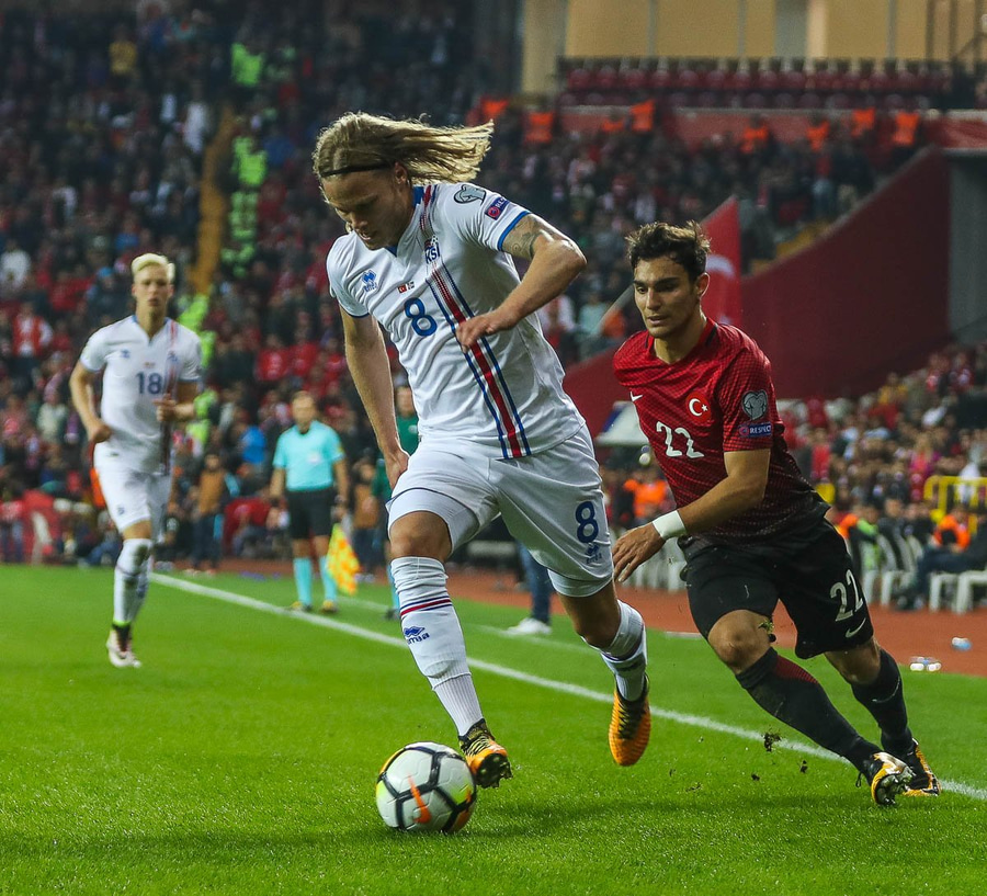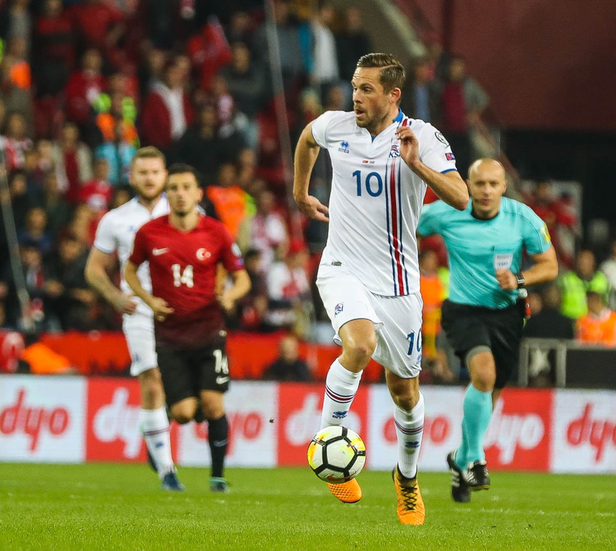 Fyrst átti Jói Berg skot sem fór í varnarmann og barst til Gylfa rétt fyrir utan teiginn. Gylfi lét vaða og náði hörkuskoti sem Volkan í marki Tyrkja rétt náði að slá yfir í hornspyrnu!