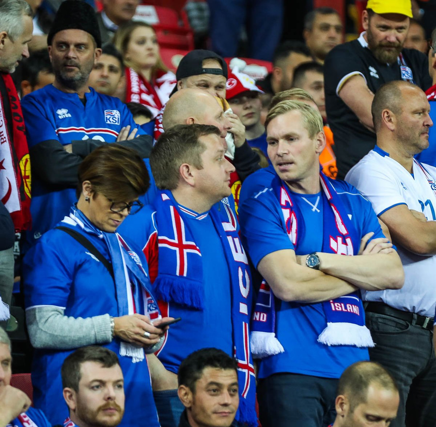 Ísland byrjaði með knöttinn. Það er SVAKALEG stemning hér á vellinum.