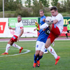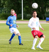 Undur og stórmerki. Baldur Sigurðsson, Smalinn, er staddur utanvallar þessa stundina þar sem þarf að hlúa ð höfði hans. Honum til varnar tók hann boltann á trýnið og verið er að fylla upp í nasirnar sýnist mér.