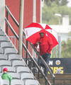 Bóas er að sjálfsögðu mættur í stúkuna og var rétt í þessu að veifa rauða spjaldinu á loft, á hvað veit ég ekki en betri stuðningsmann er erfitt að finna!