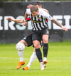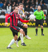 Bjerregaard í baráttunni inná teignum og er nálægt því að ná að pota í boltann en Larsen kemst í boltann á undan honum, við fáum mörk í þennan leik ég lofa því!
