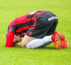 Straujar Pálma eftir að hann er búinn að senda hann, aaaaaltof seinn og hárrétt spjald. Bóas veifar rauða spjaldinu aftur en þetta var hárrétt þótt hann hefði verið alltof seinn.