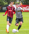 Finnur Orri með skot fyrir utan í varnarmann og boltinn fer rétt framhjá stönginni, þarna munaði engu!