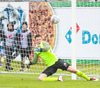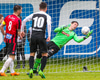 Bjarni Páll kominn upp að endalínu inni í teig og ætlar að koma honum fyrir á Alex en Beitir nær höndum á boltann eftir að hafa misst hann fyrst.