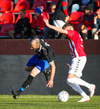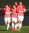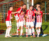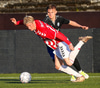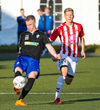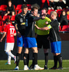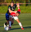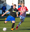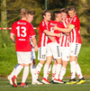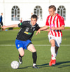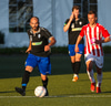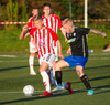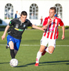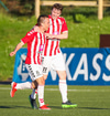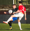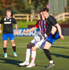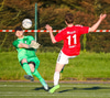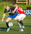 Emil næstum búinn að fullkomna þrennuna!!!! Kemst einn í gegn og Helgi kemur á móti í markinu. Emil ætlar að lyfta honum yfir hann en botlinn fer rétt yfir.