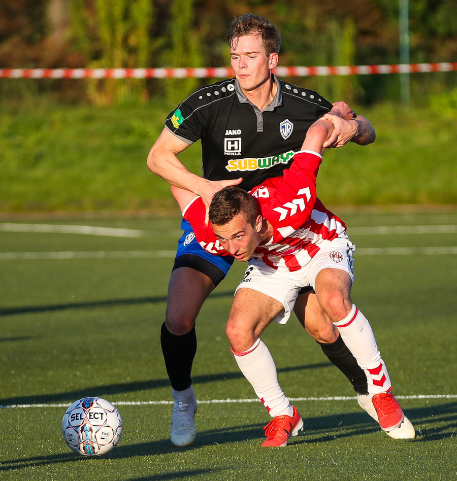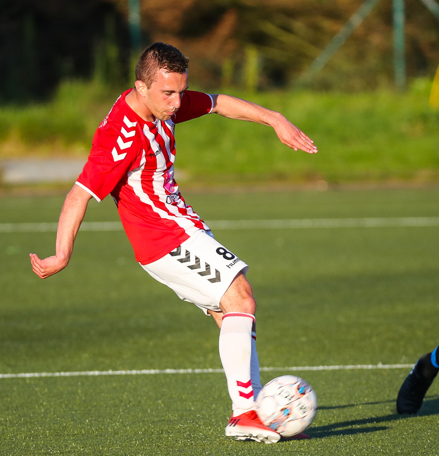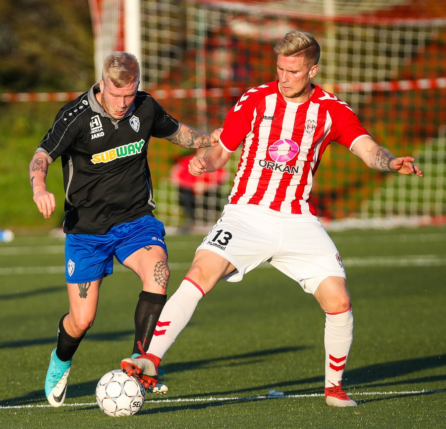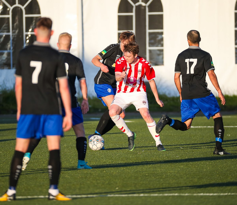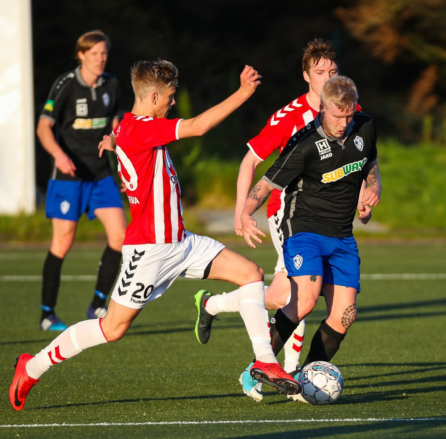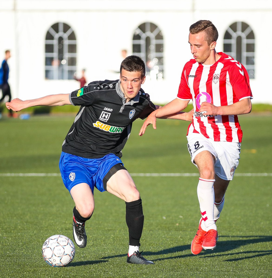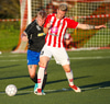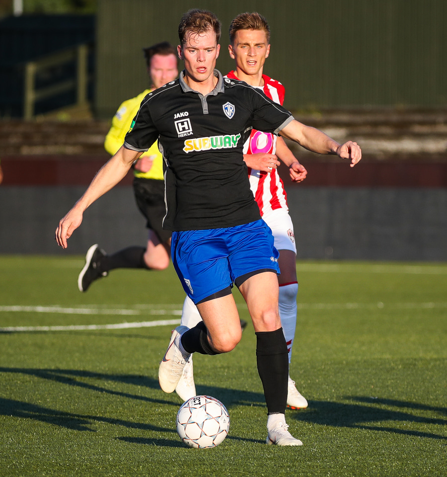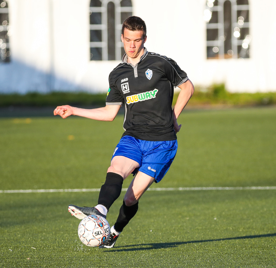 Kristófer Konráðs að sóla svartar keilur á vellinum. Leggur hann síðan inn í teiginn á Emil sem rennir honum rétt framhjá.