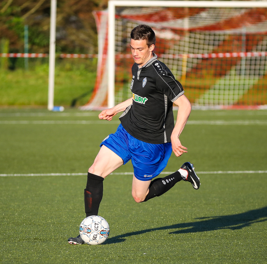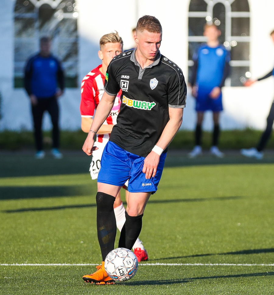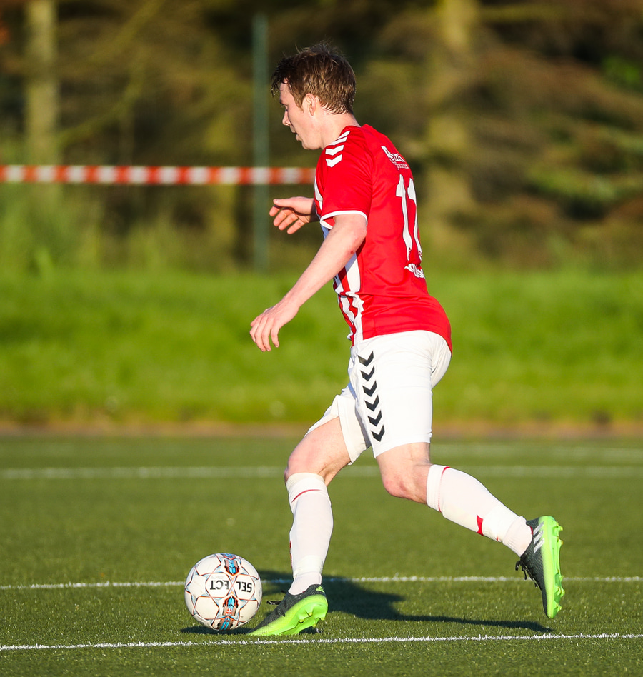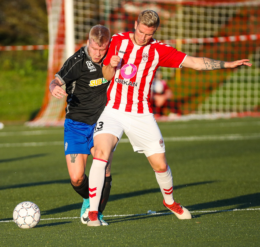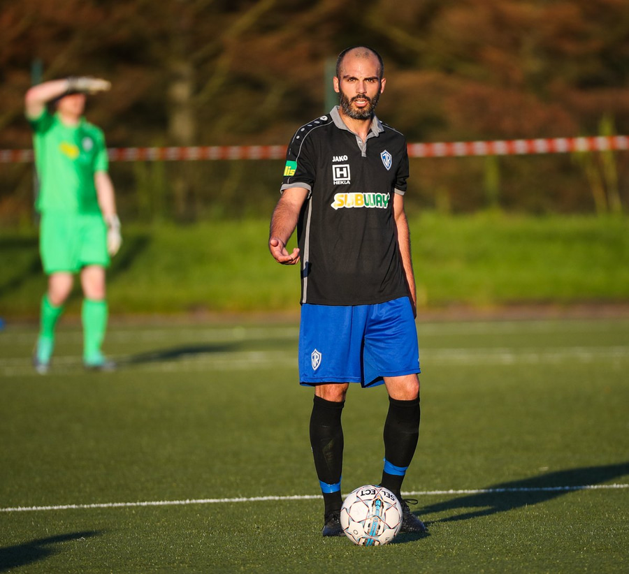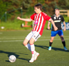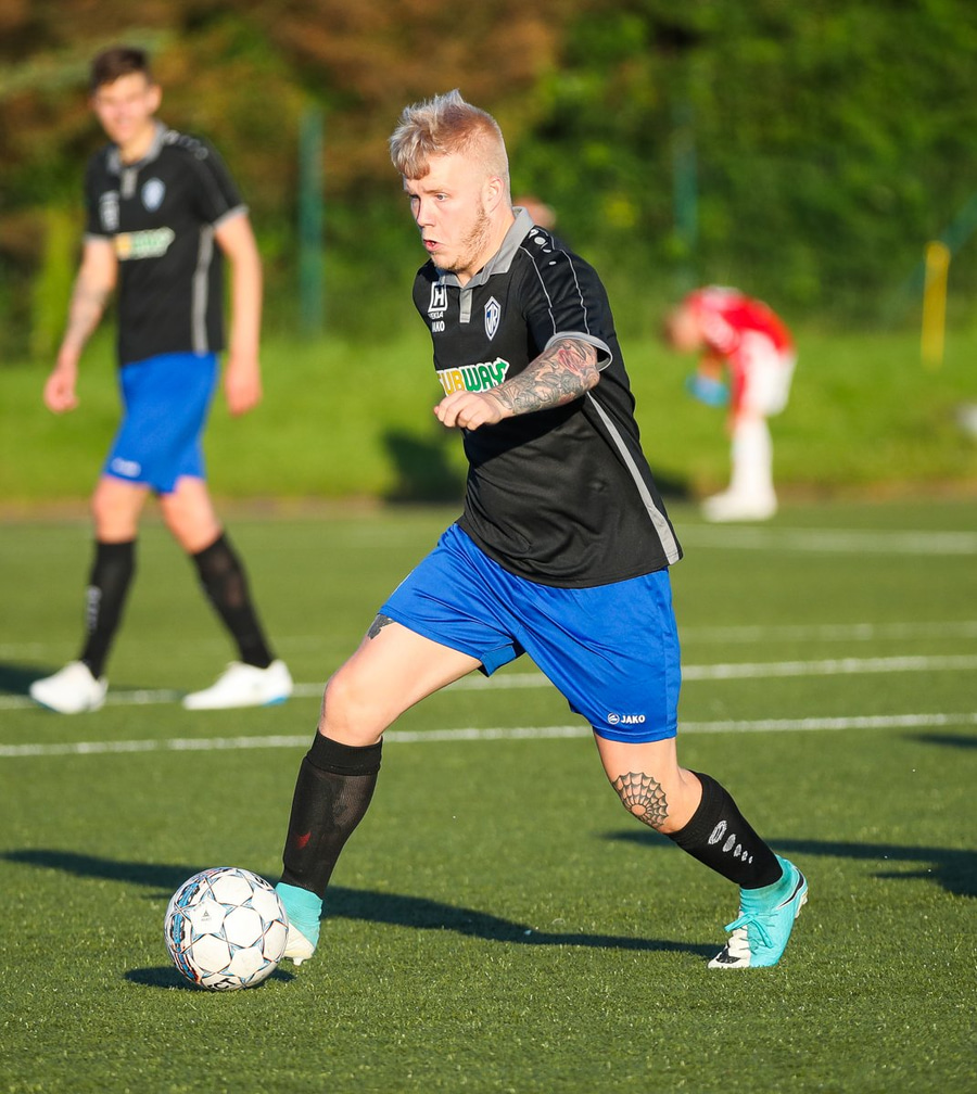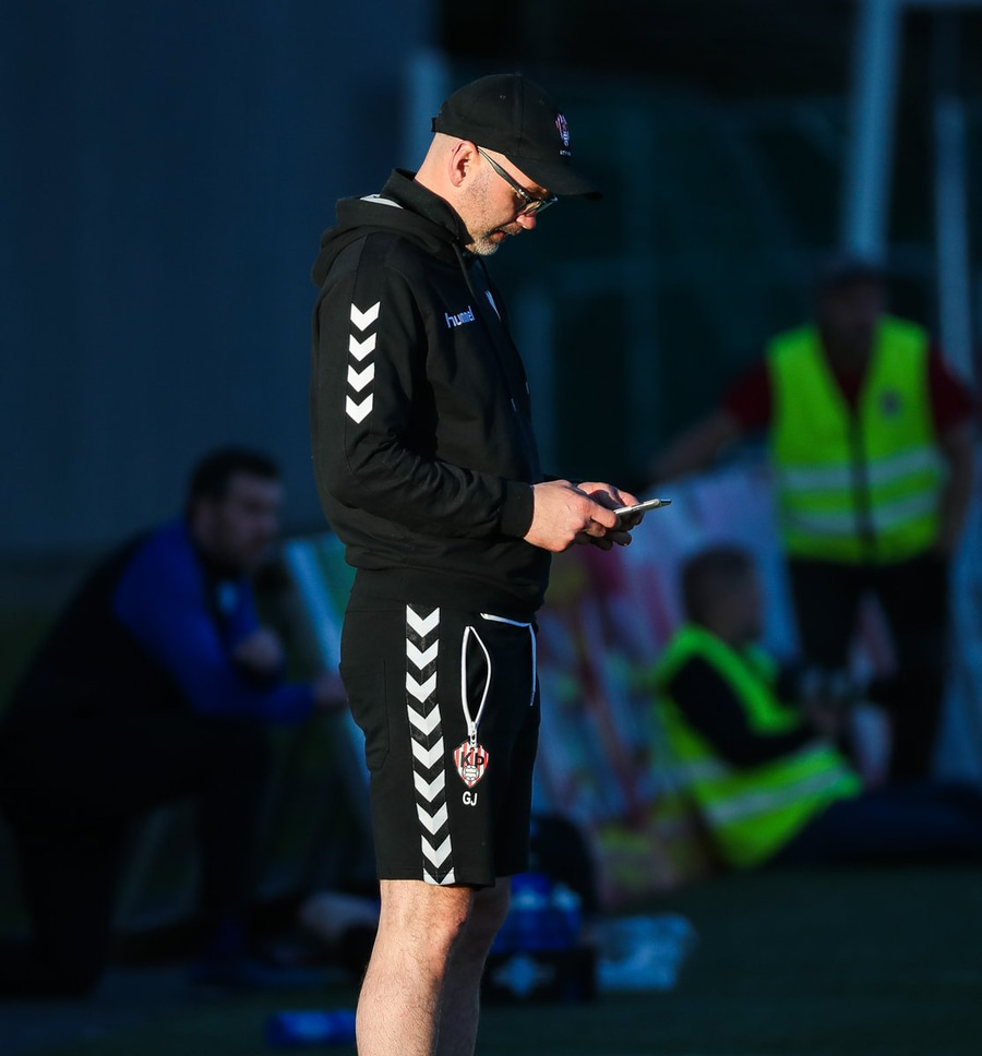 Kristófer Konráðs að sóla svartar keilur á vellinum. Leggur hann síðan inn í teiginn á Emil sem rennir honum rétt framhjá.