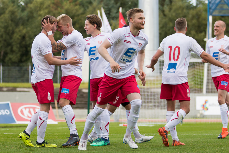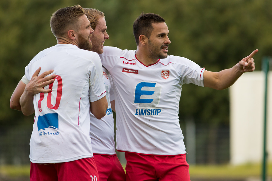 Jóhann Helgi stekkur á bakið á Tiago, sem tekur hann á hestbak og ber hann tvo þrjá metra áður en aukaspyrna er dæmd. Fram sækir, vinna innkast sem er grítt inn í teig þar sem Guðmundur Magnússon skallar boltann beint á Aron Birki.