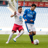 Aron Kristófer með flott hlaup upp völlinn, reynir fyrirgjöf og Atli Gunnar kemur langt út í teiginn til að ná henni.