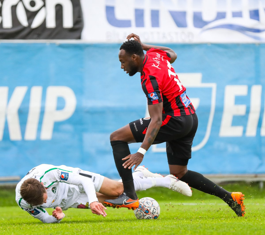 Hendrickx sloppinn einn í gegn eftir gullsendingu frá Gísla en fer illa að ráði sínu og setur boltann yfir.
