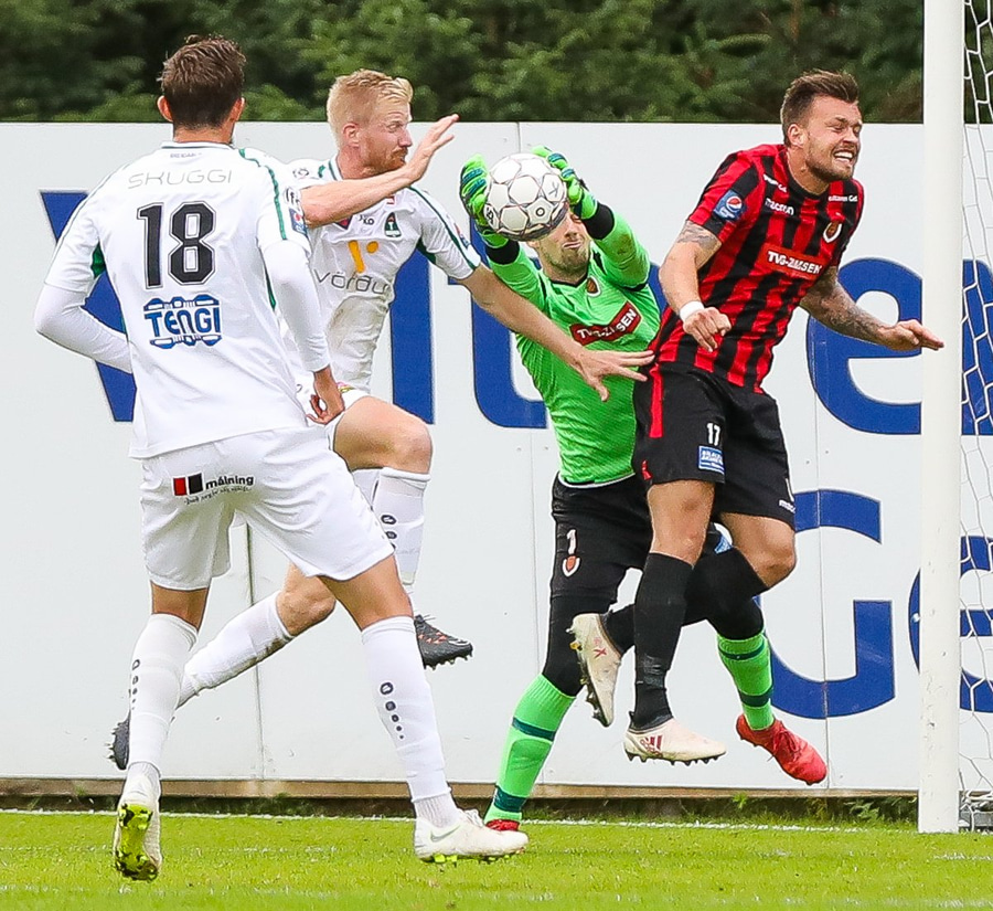 Castillion vinnur Damir í loftinu og leggur boltann fyrir Rick sem á slakt skot sem Gulli á ekki í vandræðum með.