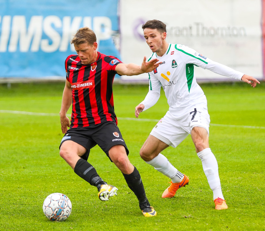 Blikar fá hér aukaspyrnu á mjög hættulegum stað. Gunnlaugur togar Mikkelsen niður, Sá danski gerði mjög mikið úr þessu sem en aukaspyrna er rétt niðurstaða.