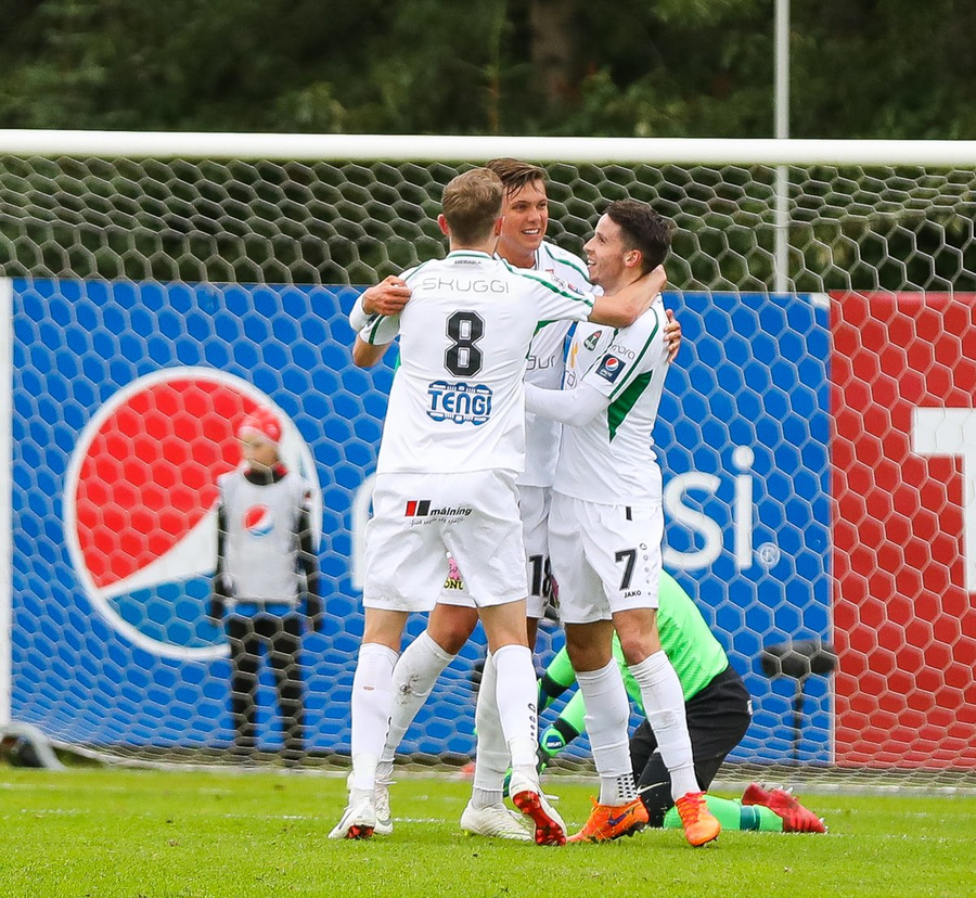 Fyrst virtist þetta vera sjálfsmark en Blikar fagna Viktori. Það var hann sem skoraði þetta.