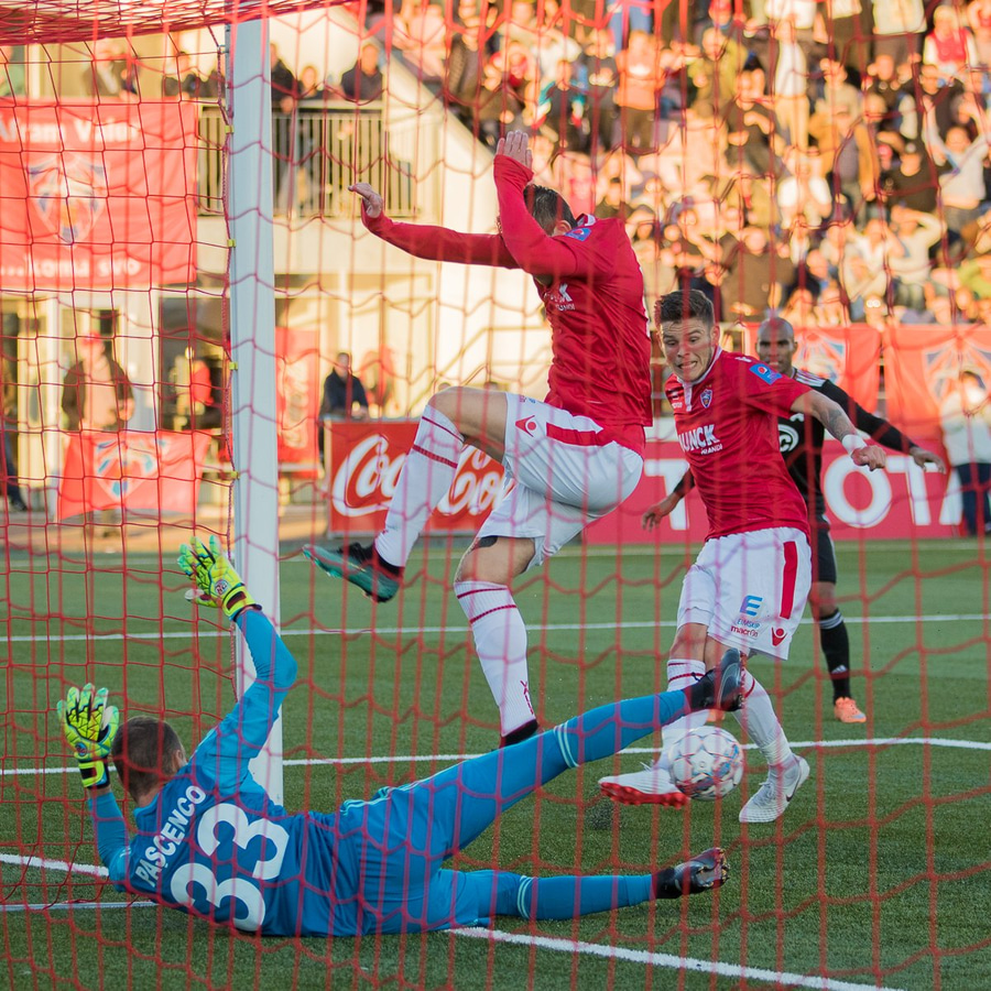 Dion fær góða stungusendingu frá Hauki Pál og gerir mjög vel að komast framhjá Kulusic. Síðan reynir hann að chippa boltanum yfir Pasceno en boltinn fer langt framhjá. Þarna átti hann klárlega að gera betur.