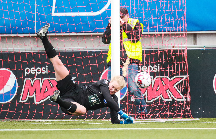 Ég á bara ekki til orð. Hversu GEGGJUÐ er Birta í markinu? Hún ver stórkostlega frá Elín Mettu og svo fer seinna skotið frá henni framhjá markinu.