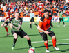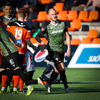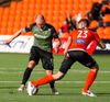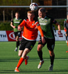 Castillion með skot fyrir utan teig eftir gott spil við Helga Val en Hannes tekur sjónvarpsvörslu og grípur boltann.