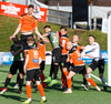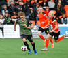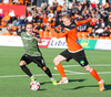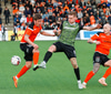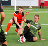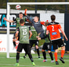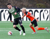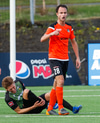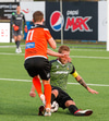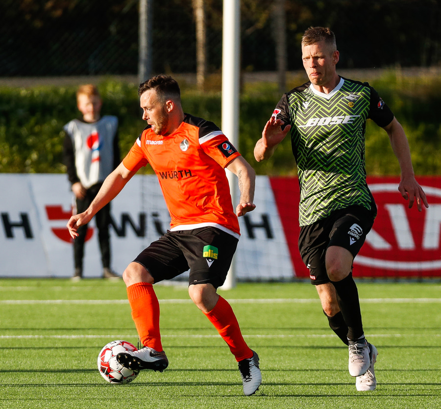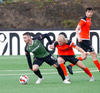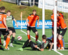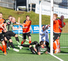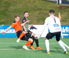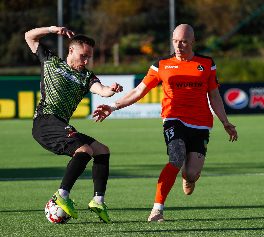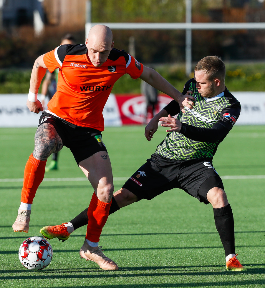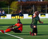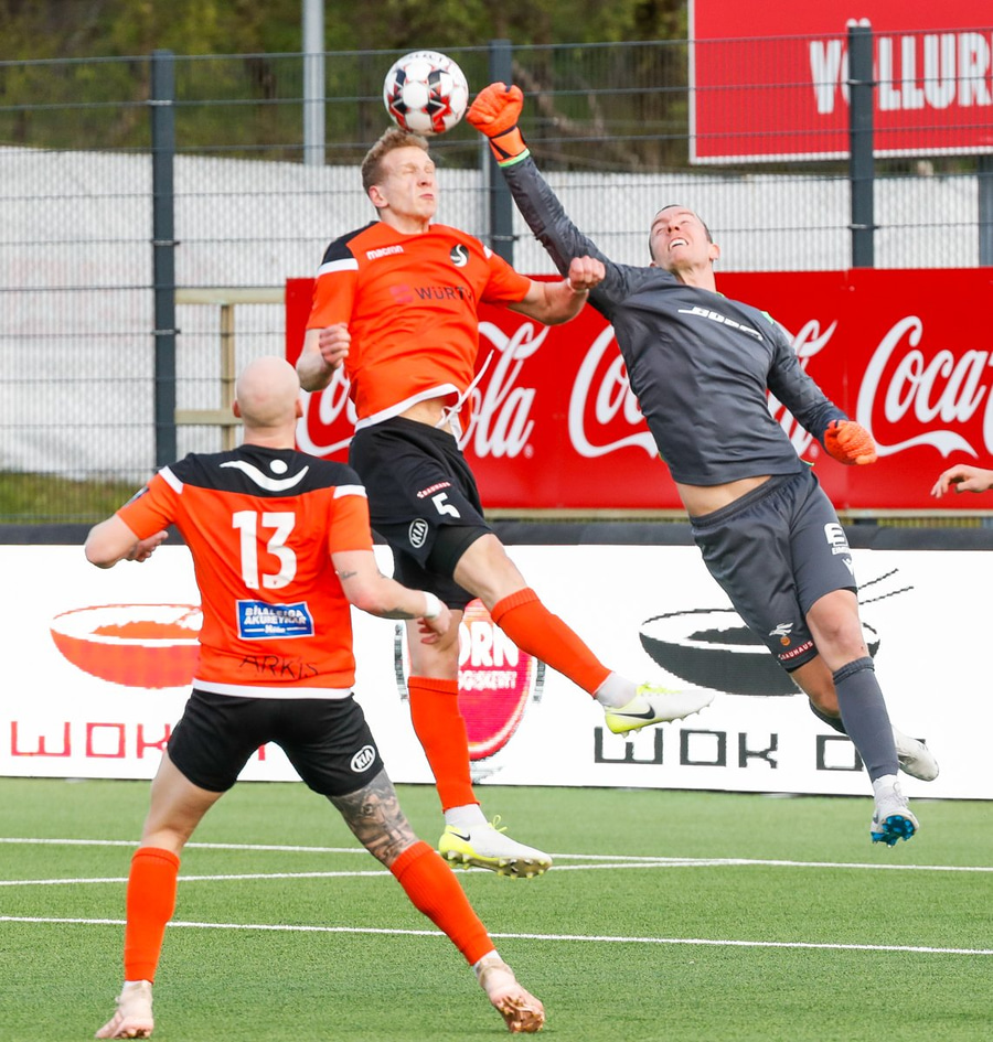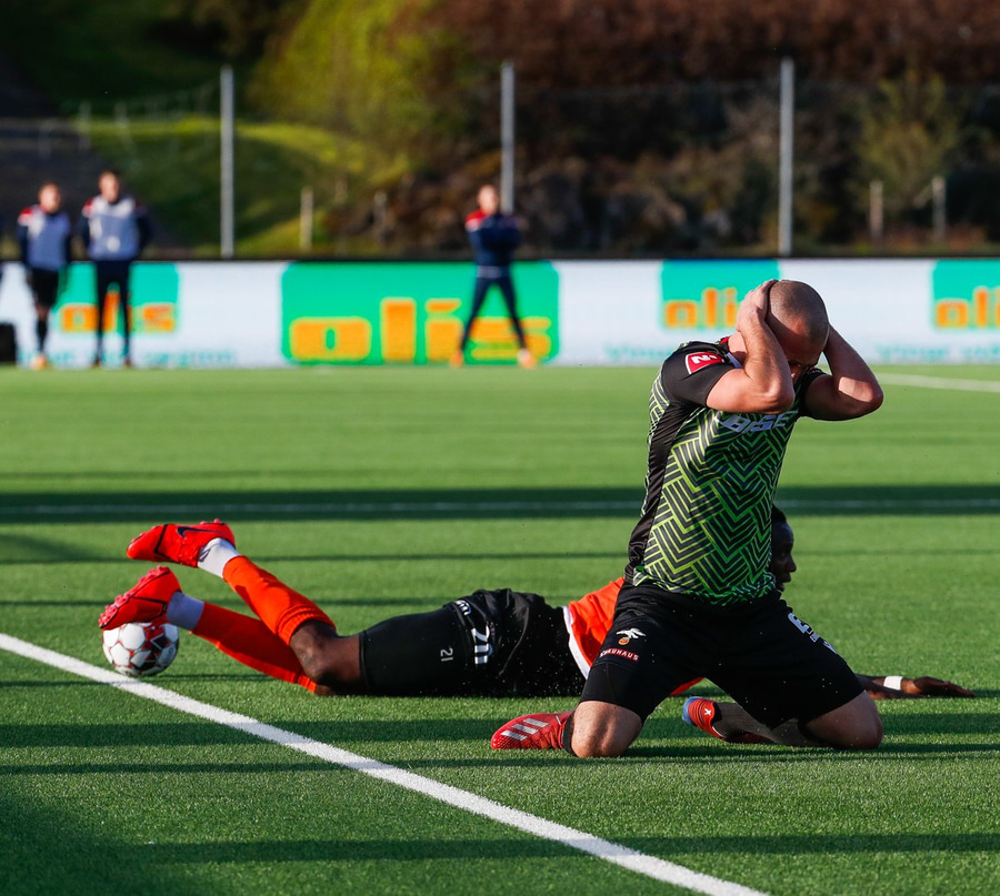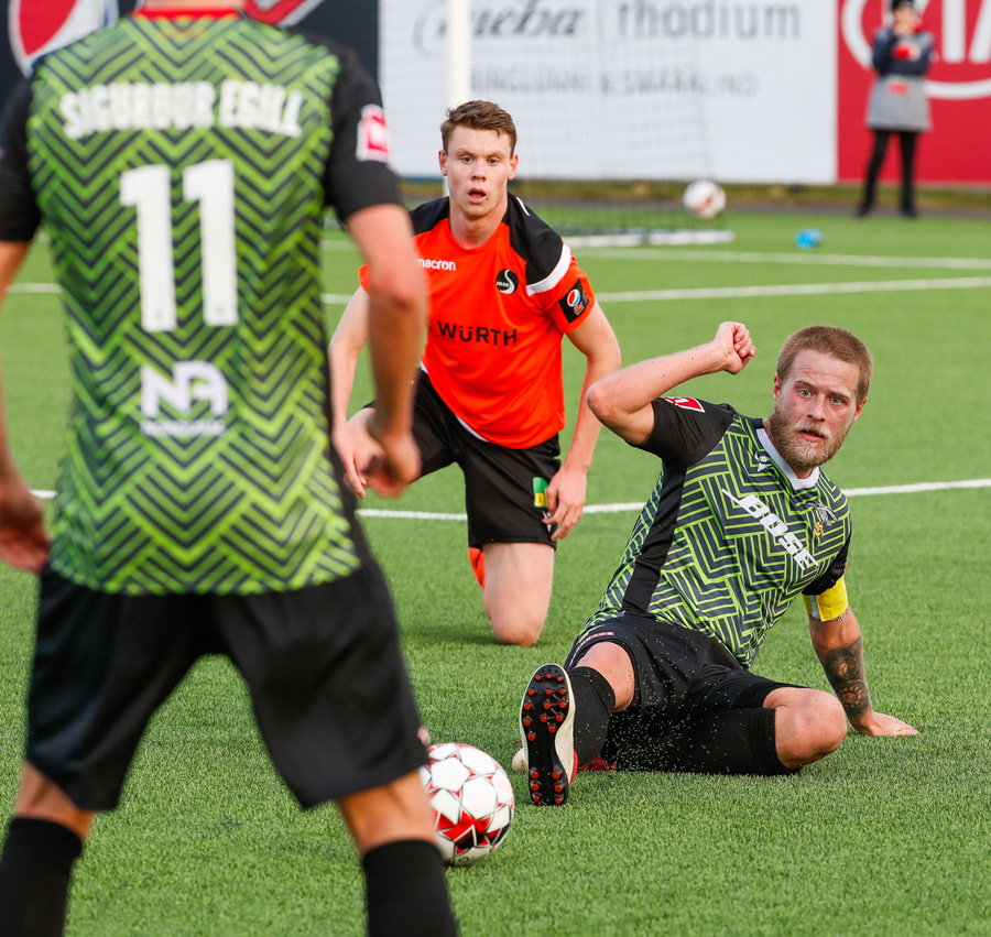 Þarna munaði nokkrum millímetrum að Castillion næði að reka tánna í boltann eftir góðan undirbúning Arnórs Gauta og Orra Sveins en Hannes er á undan til boltans.