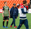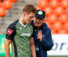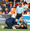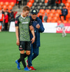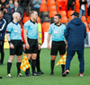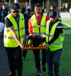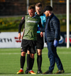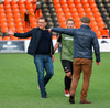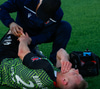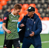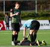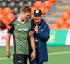 Þá kom loksins skiptingin. Lasse getur ekki haldið leik áfram.