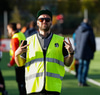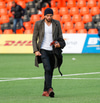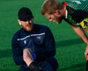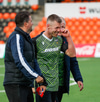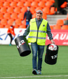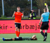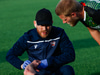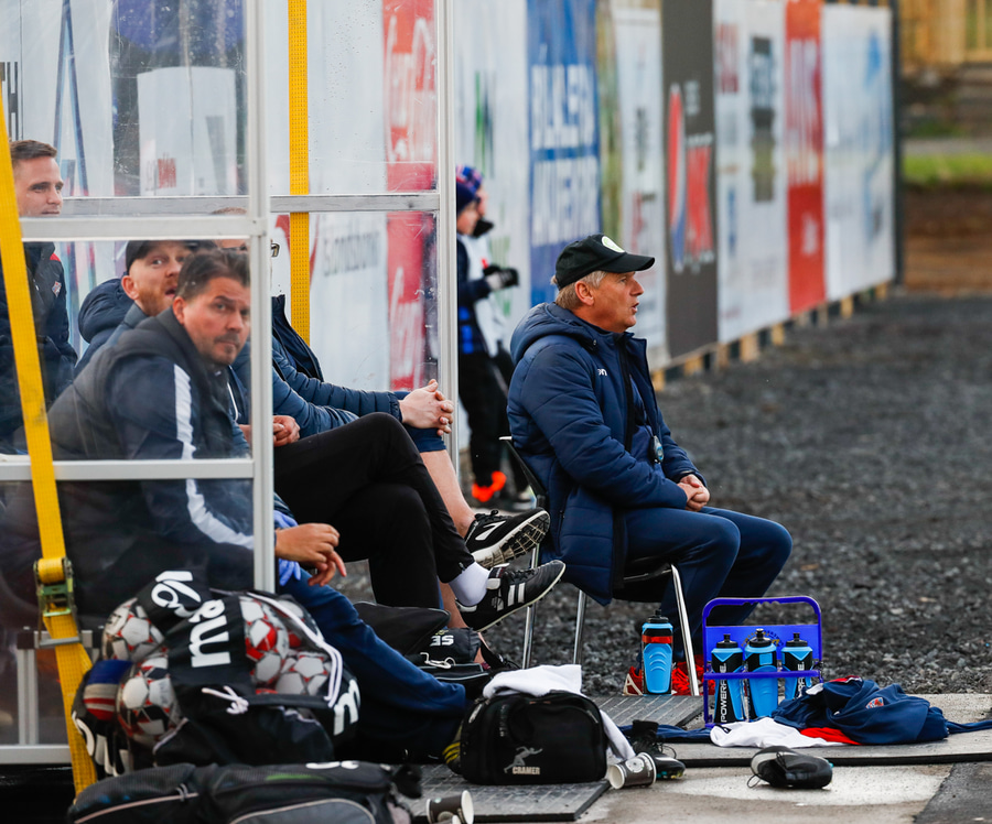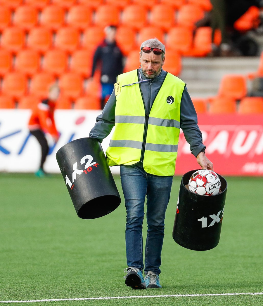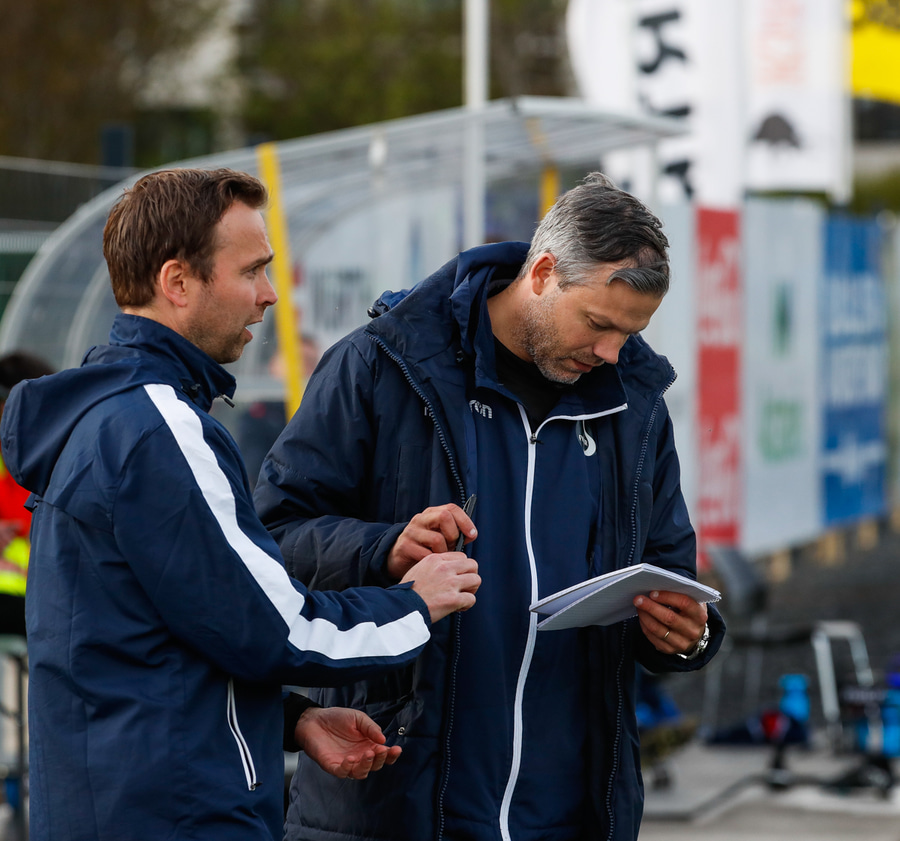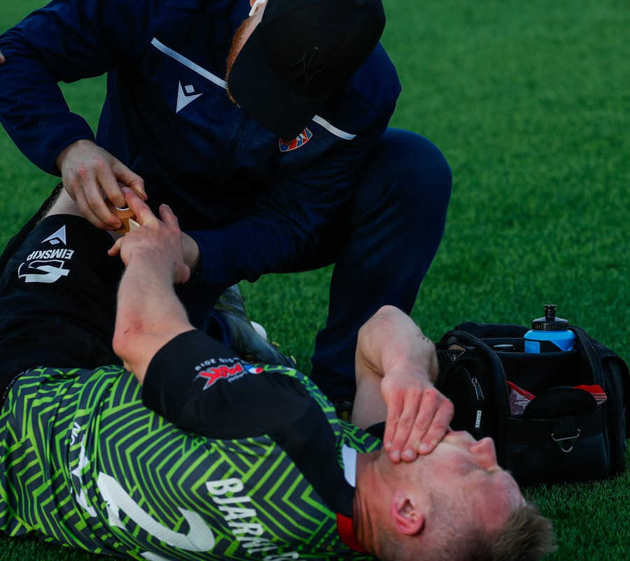 Kristinn Ingi fær hér mann inná völlinn til að reima fyrir sig. Einhver er innkoman.