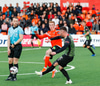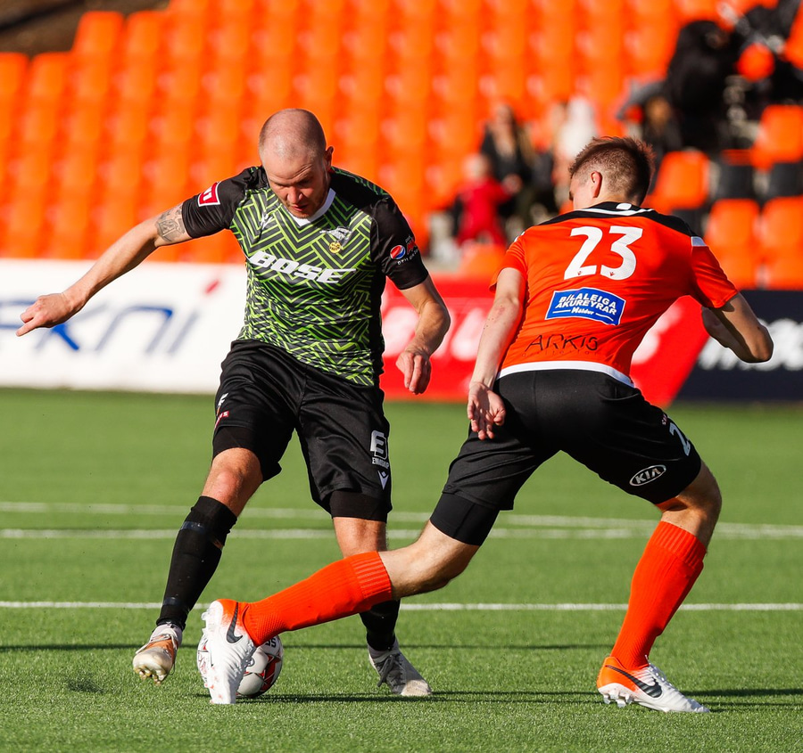 Ari Leifsson tekur hér Kristinn Inga úr skónum og fær dæmda á sig aukaspyrnu. Mjög klaufalegt.