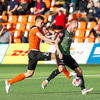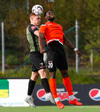 Orri Sveinn með alveg afleita fyrirgjöf sem að Ólafur Ingi nær á einhvern ótrúlegan hátt að skutla sér eftir og stýra honum á markið en Hannes er vel á verði. Ólafur Ingi búinn að haltra í tíu mínútur.