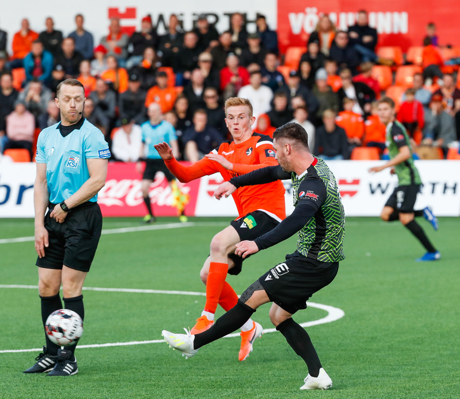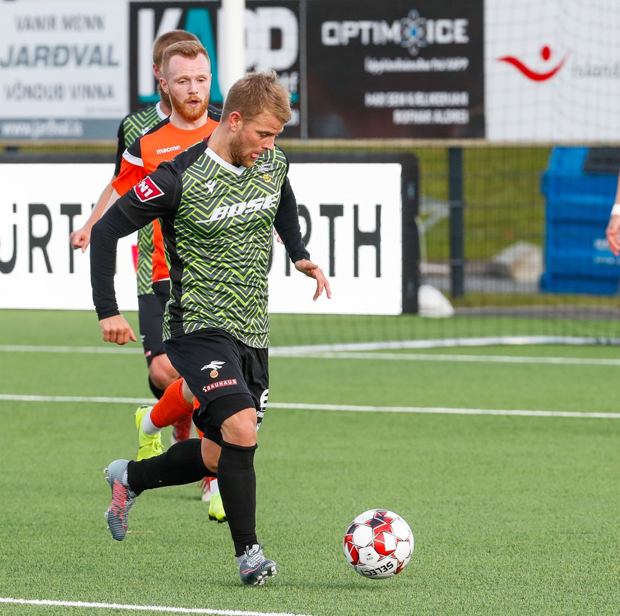 Daði Ólafs reynir hér skot með hægri fæti en það er alveg vonlaust og fer langt framhjá.