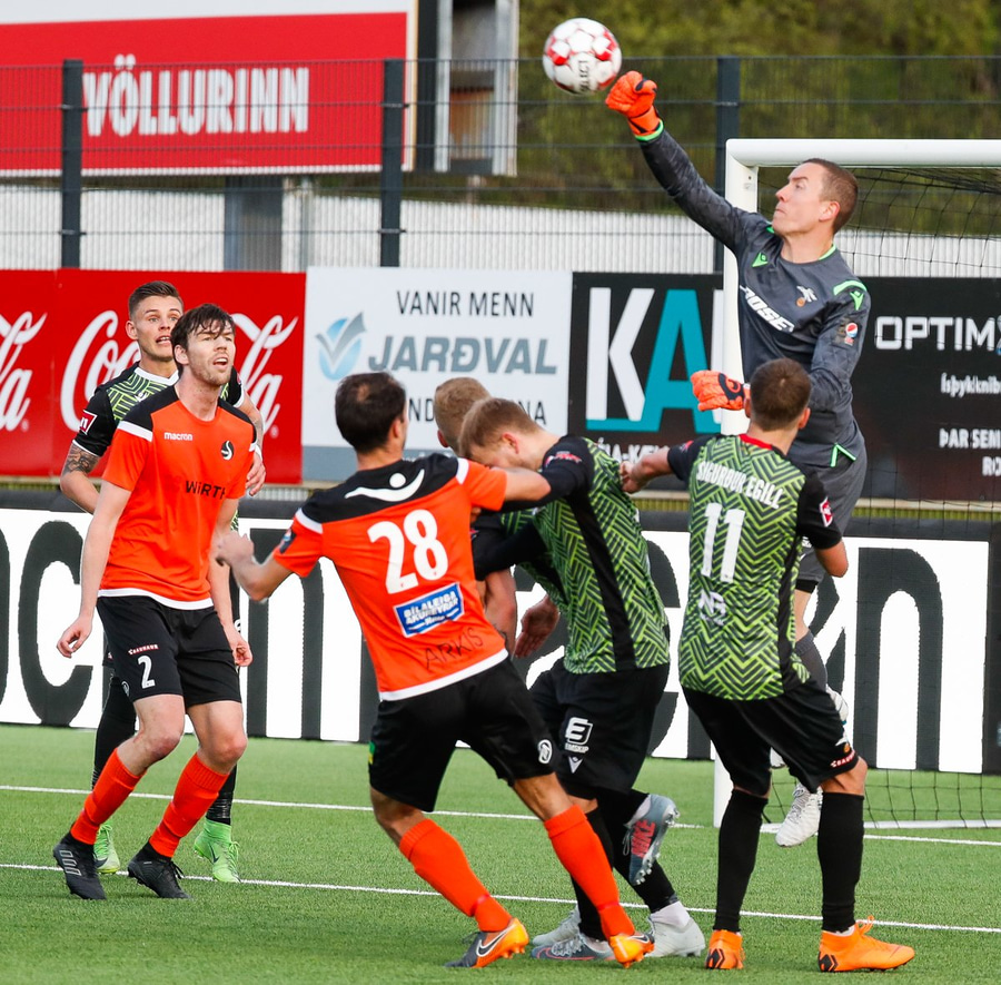 Daði Ólafs er að koma með mjög góðar hornspyrnur hérna en nú er það skalli Orra sem að fer framhjá.