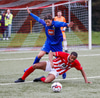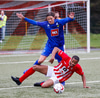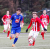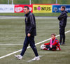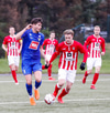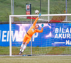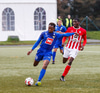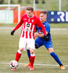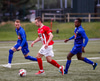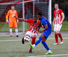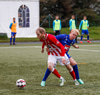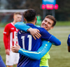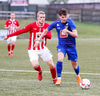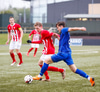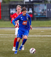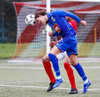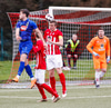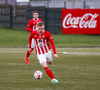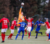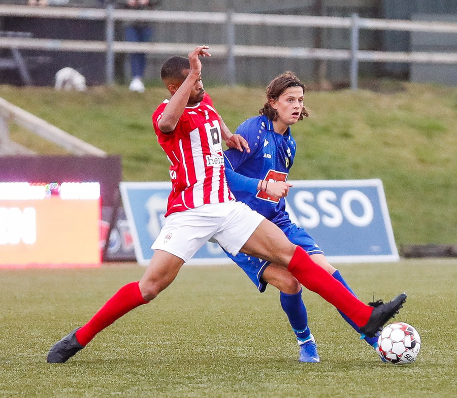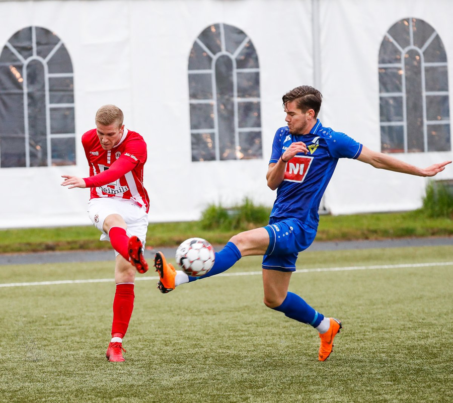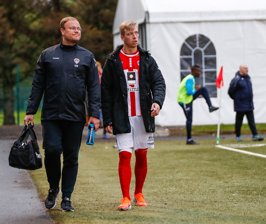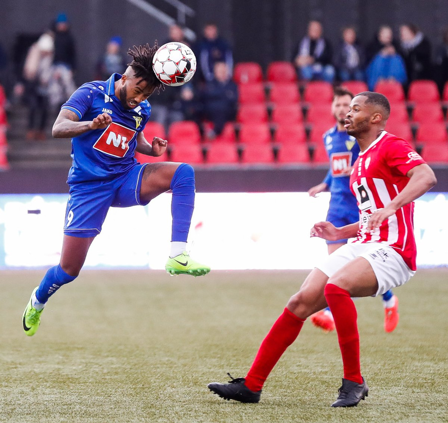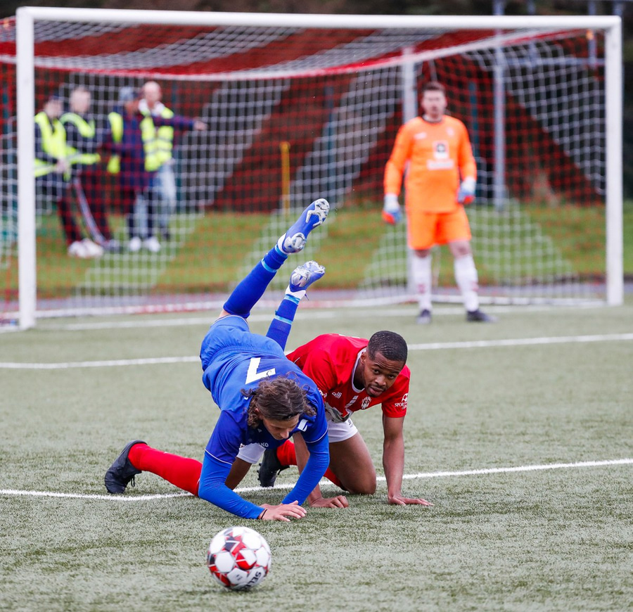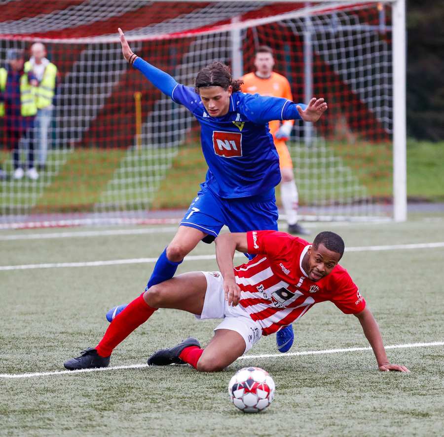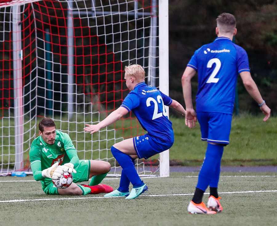 Jæja Jasver Van Der Heyden setur boltann fyrir markið og Ágúst Leó gerir áras á boltann en nær ekki skallanum á markið þar sem hann er truflaður í skallanum.