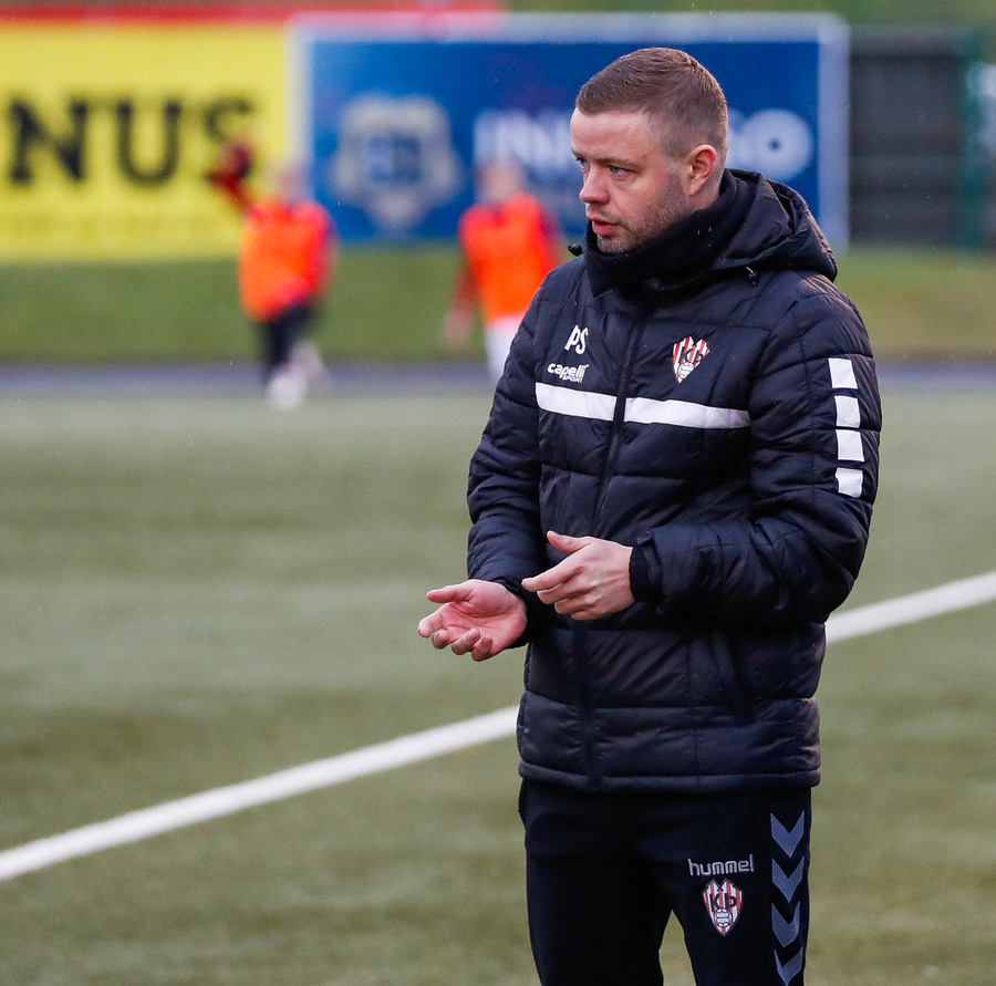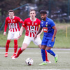 Þeir taka langan bolta fram þar sem Stefán Pálsson leggur boltann skemmtilega fyrir Sallieu í fyrsta en Arnar ver frá honum veikt skot.