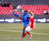 Aron kemur með hörku spyrnu inn á teiginn sem er skölluð beint fyrir Birkir en það kemur bara einn fljúgandi Ólsari og tæklar fyrri skotið hans! Geggjuð tækling.