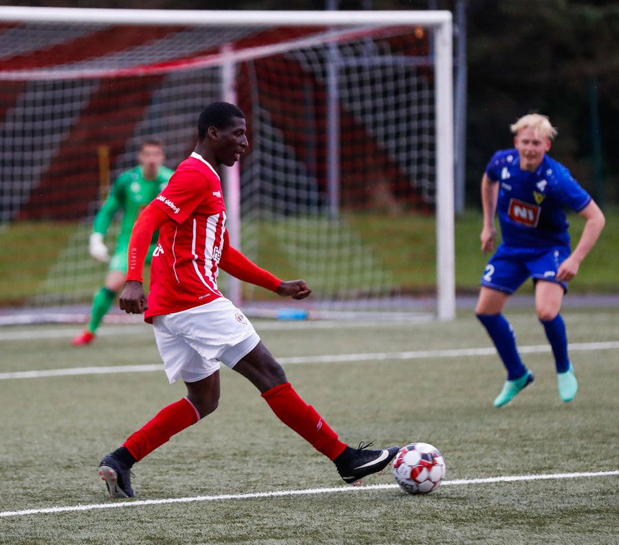 Sallieu gerir virkilega vel í að koma boltanum inn á Harley sem er í kjörstöðu á vítateigslínunni og leggur boltann fyri vinstri fótinn sinn og setur boltann í netið!