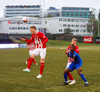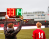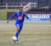 Spyrnan er tekinn stutt og svo reynt fyrirgjöf sem Sallieu skallar en boltinn fer tugi metra framhjá.