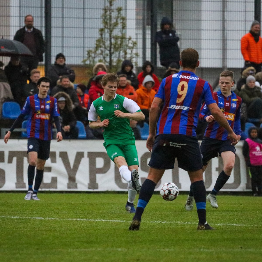 Uppúr horninu fær svo Vuk séns en Brynjar Atli gerir vel og bjargar eftir að fyrirgjöf Vuk tók stefnubreytingu og hafnaði að marki.