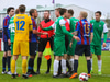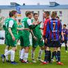 Sólon brotlegur hérna við hliðarlínuna við miðjuna. Brynjar Freyr eitthvað illa fyrir kallaður og fellur við og reynir að því er virðist að sparka til Sólons...en hittir ekki.