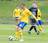 Jóhann Árni með skemmtilega sendingu inná Albert Brynjar sem reynir að senda fyrir markið en Magnamenn koma boltanum í horn.